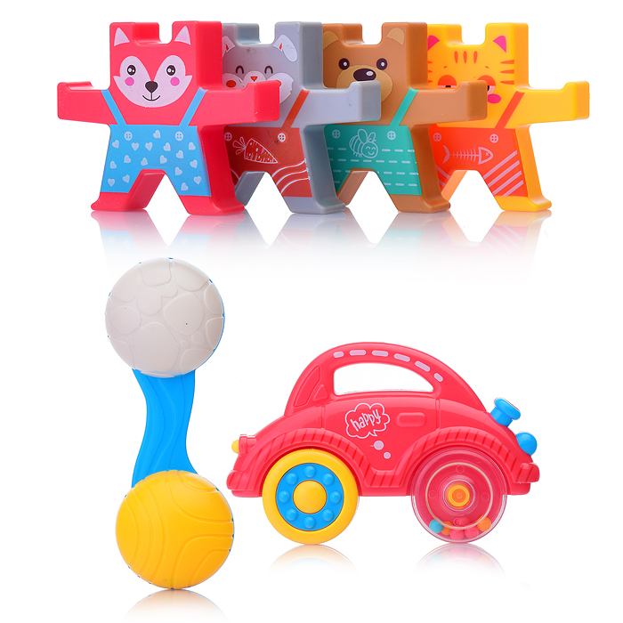 • В наборе: 6 погремушек. • Размеры игрушек: 13х2.5х8 см.; 12.5х4.5х3 см.; 7.5х2х6 см. • Материал: пластик. • Соответствует требованиям безопасности продукции.
