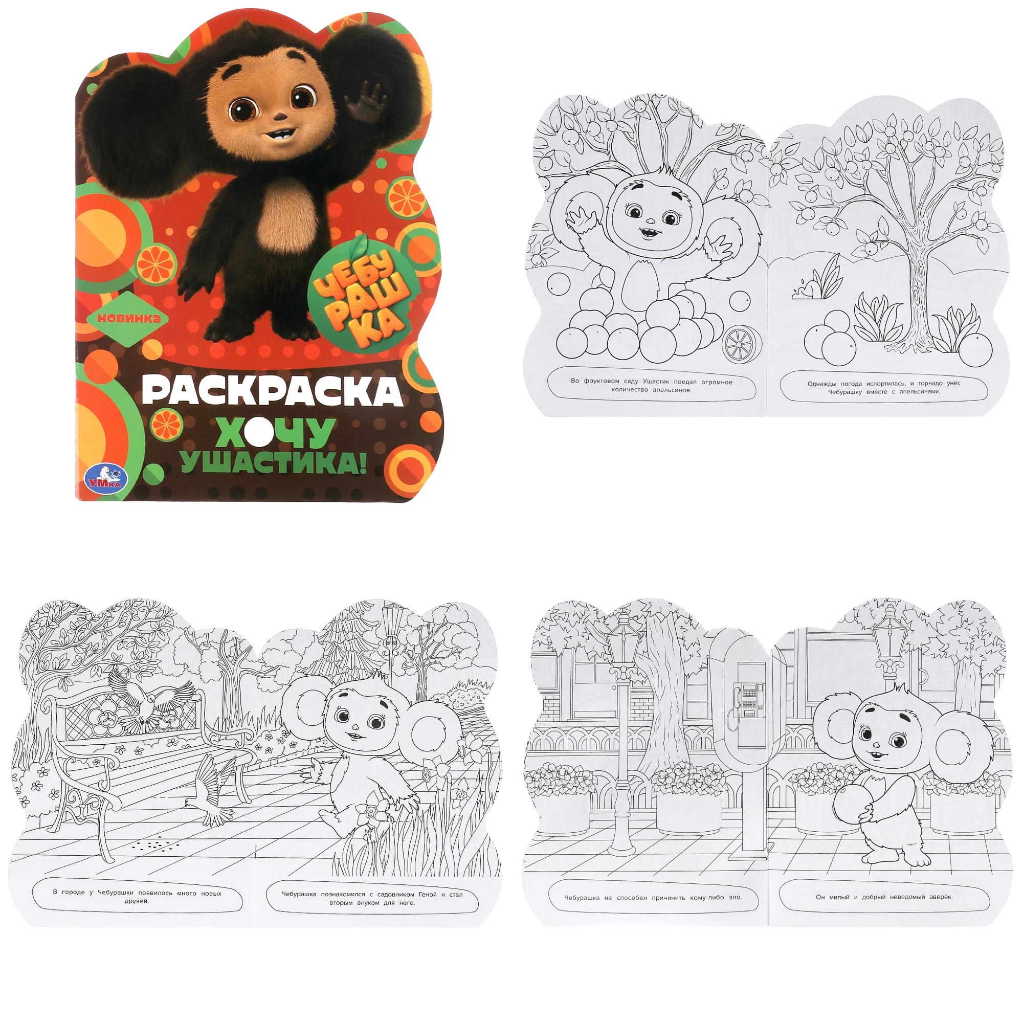 Чебурашка. Хочу ушастика! Раскраска с вырубкой в виде героя. 210х285 мм. 16 стр. Умка 9785506091066