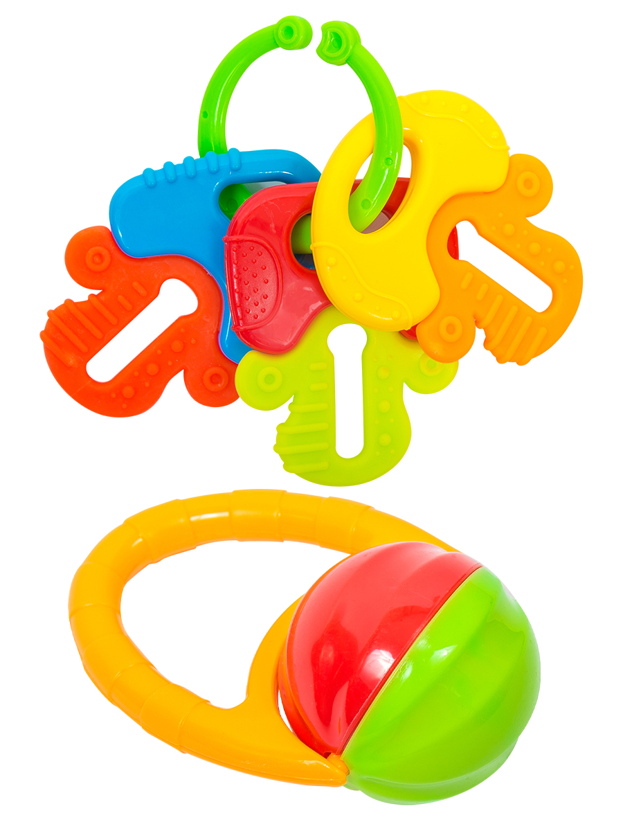 Набор погремушек придется по душе всем малышам! Красочные игрушки научат ребенка фокусировать внимание на ярких цветах и помогут развить моторику, слух, тактильное восприятие. Изготовлено из безопасной, высококачественной пластмассы. В пакете 2 шт.