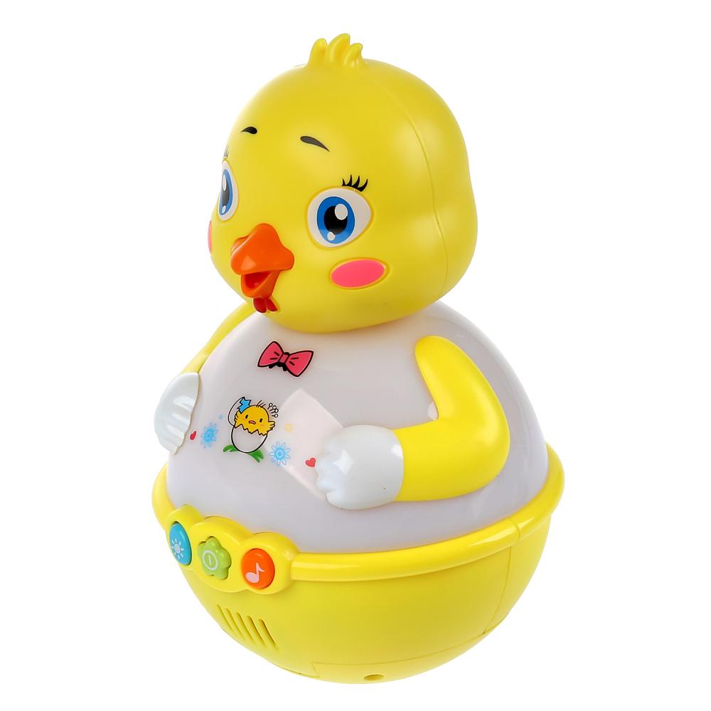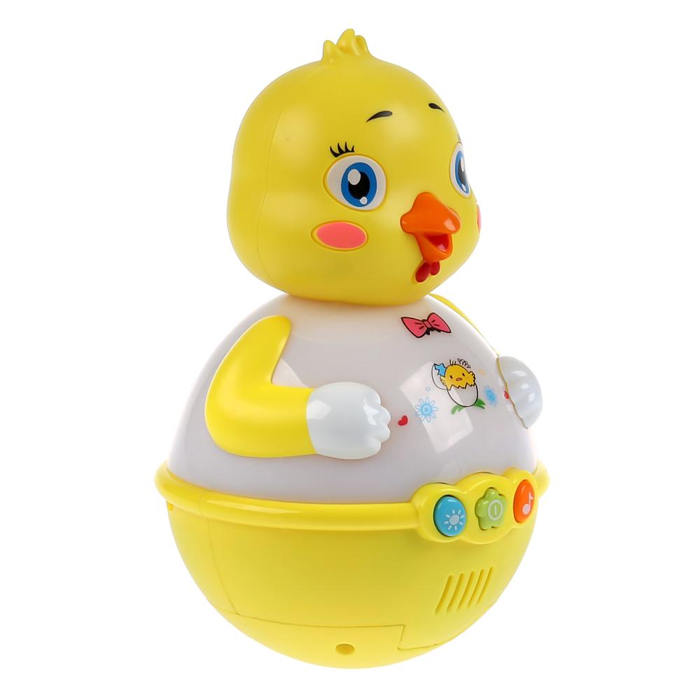 Вашего малыша приведёт в восторг эта яркая игрушка в виде цыплёнка-неваляшки. Ребёнка с удовольствием будет нажимать на кнопочки и слушать весёлые песенки и потешки.