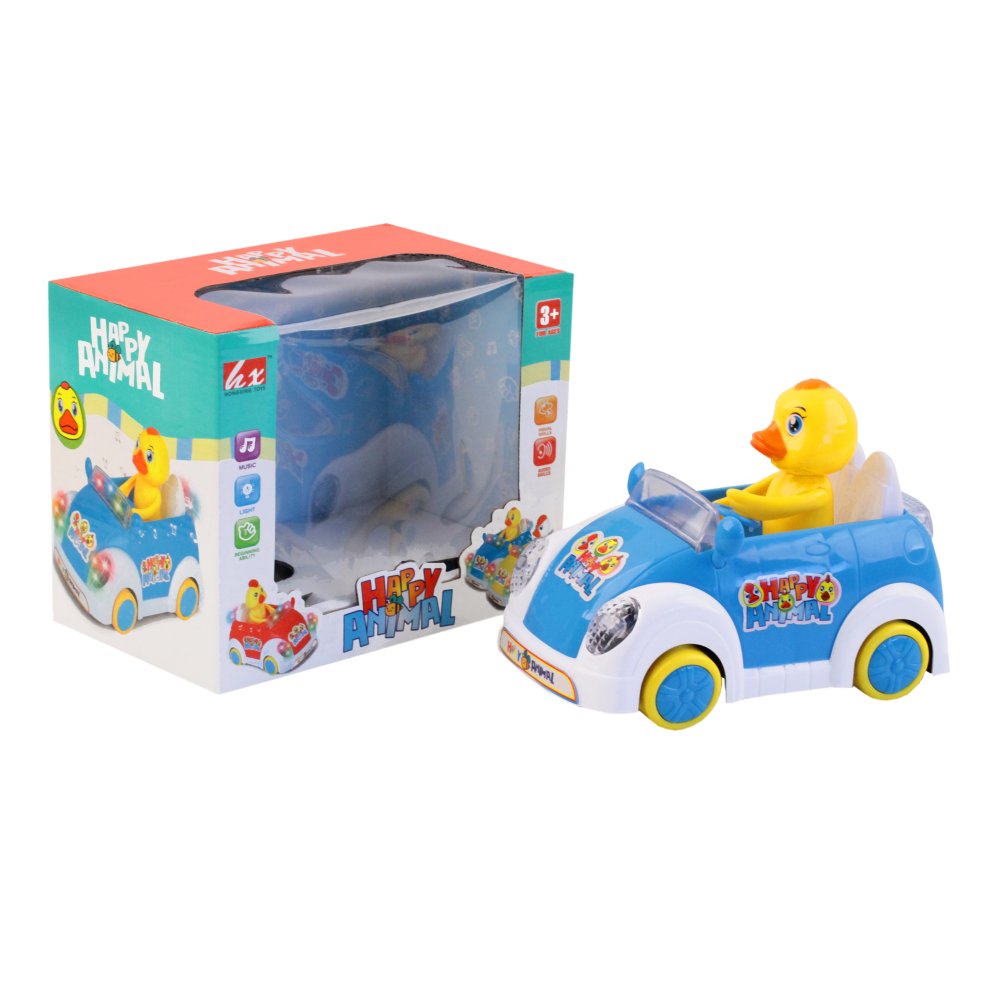 Машинка с утенком на батарейках понравится малышам. Яркие цвета и веселая музыка привлекут внимание ребенка. У машинки есть световые эффекты. Игрушка развивает воображение, цветовосприятие и мелкую моторику, а также расширяет знания об окружающем мире. Батарейки: 3АА/не входят в комплект Материал: пластик Размер упаковки: 21 x 13 x 16.5 см Рекомендуемый возраст: 3+