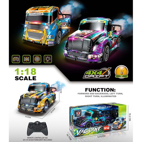 - машинка работает от 4 батареек АА 1.5V (не входят в комплект)