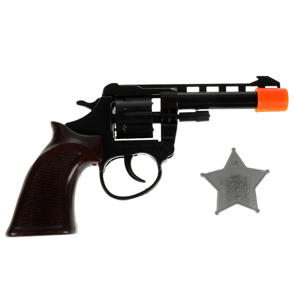 С этим игровым оружием ваш ребёнок будет придумывать увлекательные приключения на Диком Западе и стоять на страже порядка. С таким револьвером маленький герой станет самым метким стрелком. Набор подойдёт для активных игр на воздухе и в помещении.