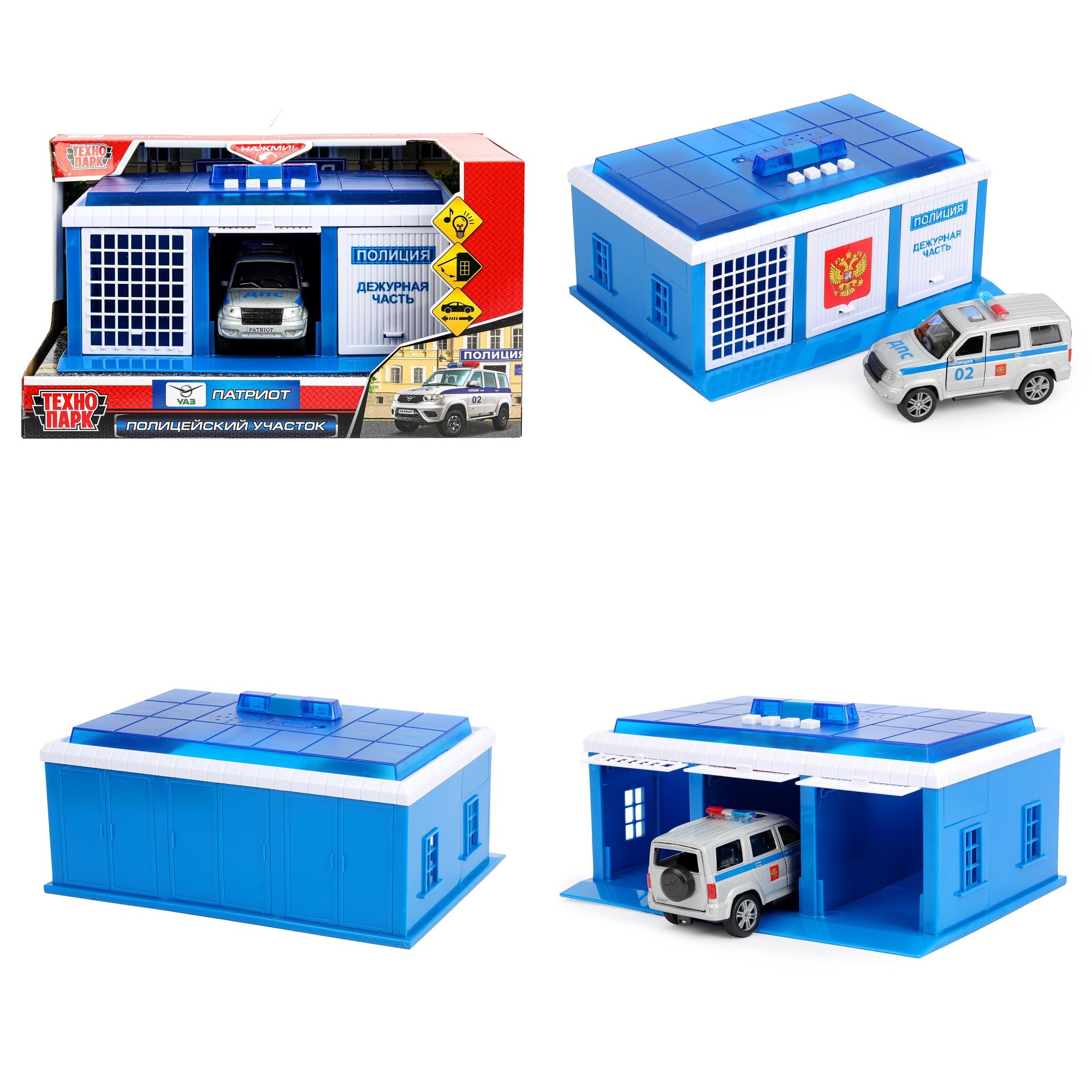 Игрушка пластик свет-звук ПОЛИЦЕЙСКИЙ УЧАСТОК 22 см, ворота, УАЗ патриоткор. Технопарк GARAGE-22SL1XCAR