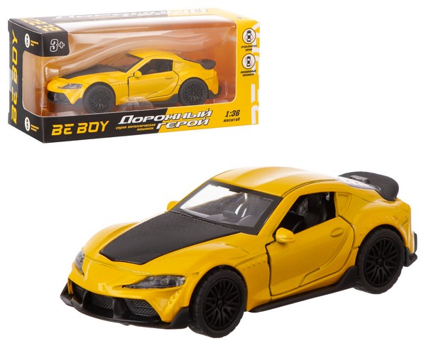 Машинка инерционная (металл.) "BeBoy", двери открываются,световые и звуковые эффекты, цвет желтый, в/к 16*6*7 см IT108656