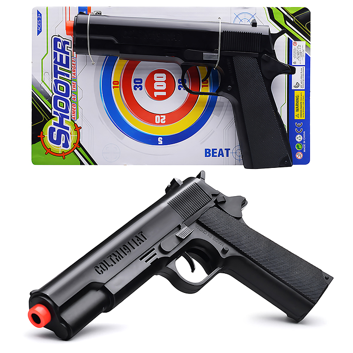 • При нажатии на спусковой крючок внутри трещит. • Размеры игрушки: 25х2,5х15 см. • Материал: пластик. • Соответствует требованиям безопасности продукции. • Для детей от 3-х лет.