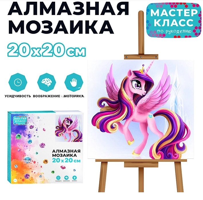 Мозаика алмазная "Розовый единорог" 20*20см. MKA2020-17