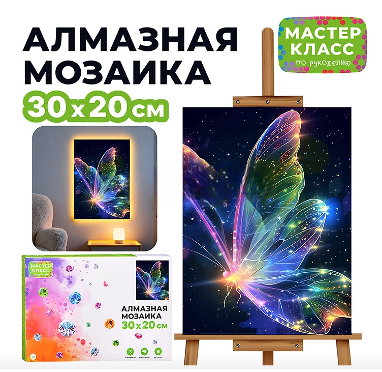 Мозаика алмазная "Ночная бабочка" (светится в темноте) 30*20 см. MKA3020-186