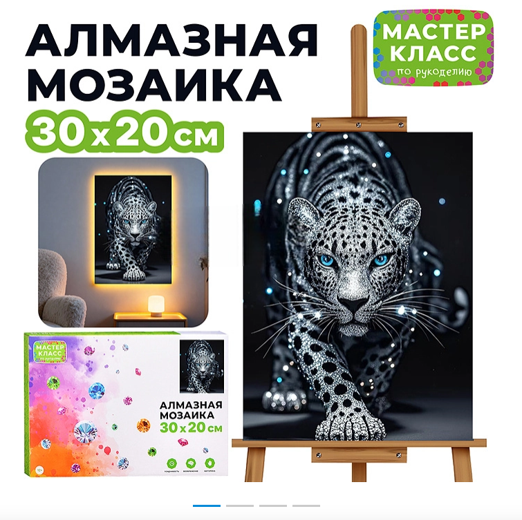 Мозаика алмазная "Леопард" (светится в темноте) 30*20 см. MKA3020-188