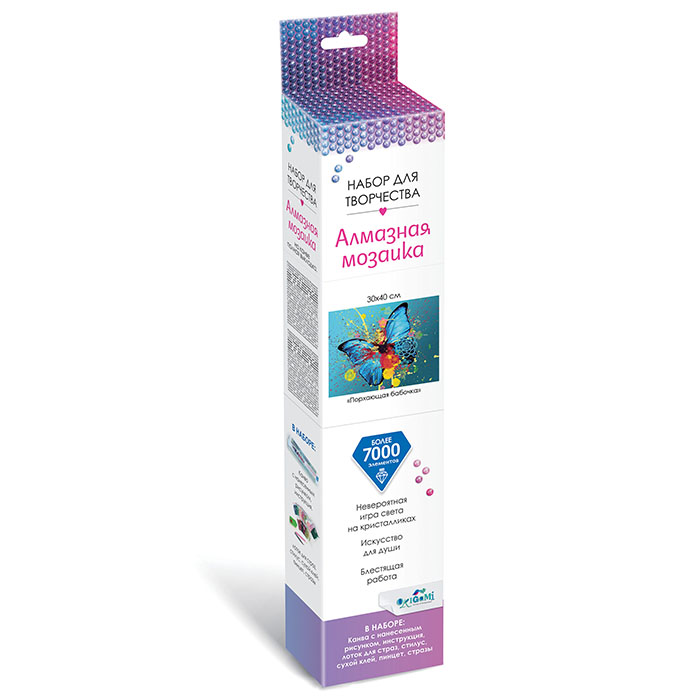 Алмазная мозаика - увлекательный вид творчества, представляющий собой альтернативу вышивке. Набор для изготовления красочной алмазной мозаики от компании "Origami" станет замечательным подарком любителям творчества и подарит массу удовольствия. Такой набор будет способствовать развитию зрительного восприятия, воображения, усидчивости, мелкой моторики. Ровное и аккуратное укладывание мелких страз требует концентрации внимания и терпения. Это отличный подарок и для юной рукодельницы, и для опытного мастера и увлекательное направление в творческой деятельности. Такие наборы помогают формировать любовь к творчеству, чувство прекрасного, художественный вкус и снимают усталость. Все элементы комплекта выполнены из качественных и безопасных материалов.