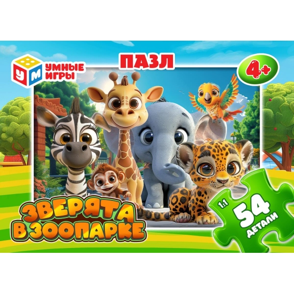 Зверята в зоопарке. Пазлы в коробке 54 детали. 90х65х25 мм. Умные игры 4660254466388