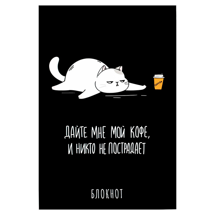 Блокнот, А5, 40 л, арт. 69256 ФРАЗЫ С ХАРАКТЕРОМ. КОТ / Блок - белый офсет 60 г/м², клетка, мягкий переплёт (2 скобы),
